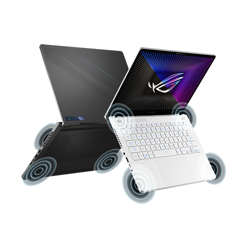 Compact gaming laptop with AMD Ryzen 9 and NVIDIA RTX graphics for high-end performance.